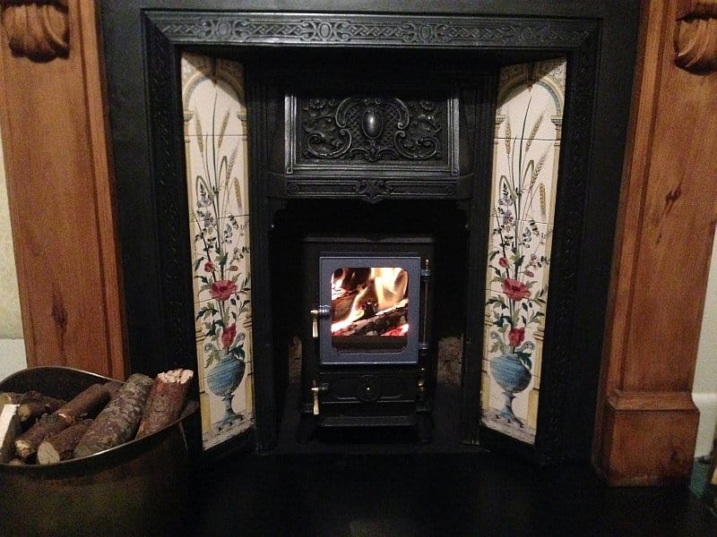 We had a Hobbit stove fitted this week by Alex Reay of Flues and Fires and I just wanted to get in touch to say it is AMAZING and we love it. We have a lovely cast iron tiled fireplace which I was desperate not to lose when we installed a wood burning stove but until I found the Hobbit on Google, everyone told me it would be impossible to keep the fire surround. The Hobbit is perfect – not only does it fit very snugly but it looks fantastic, and the blue door complements the tiles very nicely.u003cbru003eWe are sitting enjoying a fire now and absolutely loving it! Thanks for creating such an amazing product.