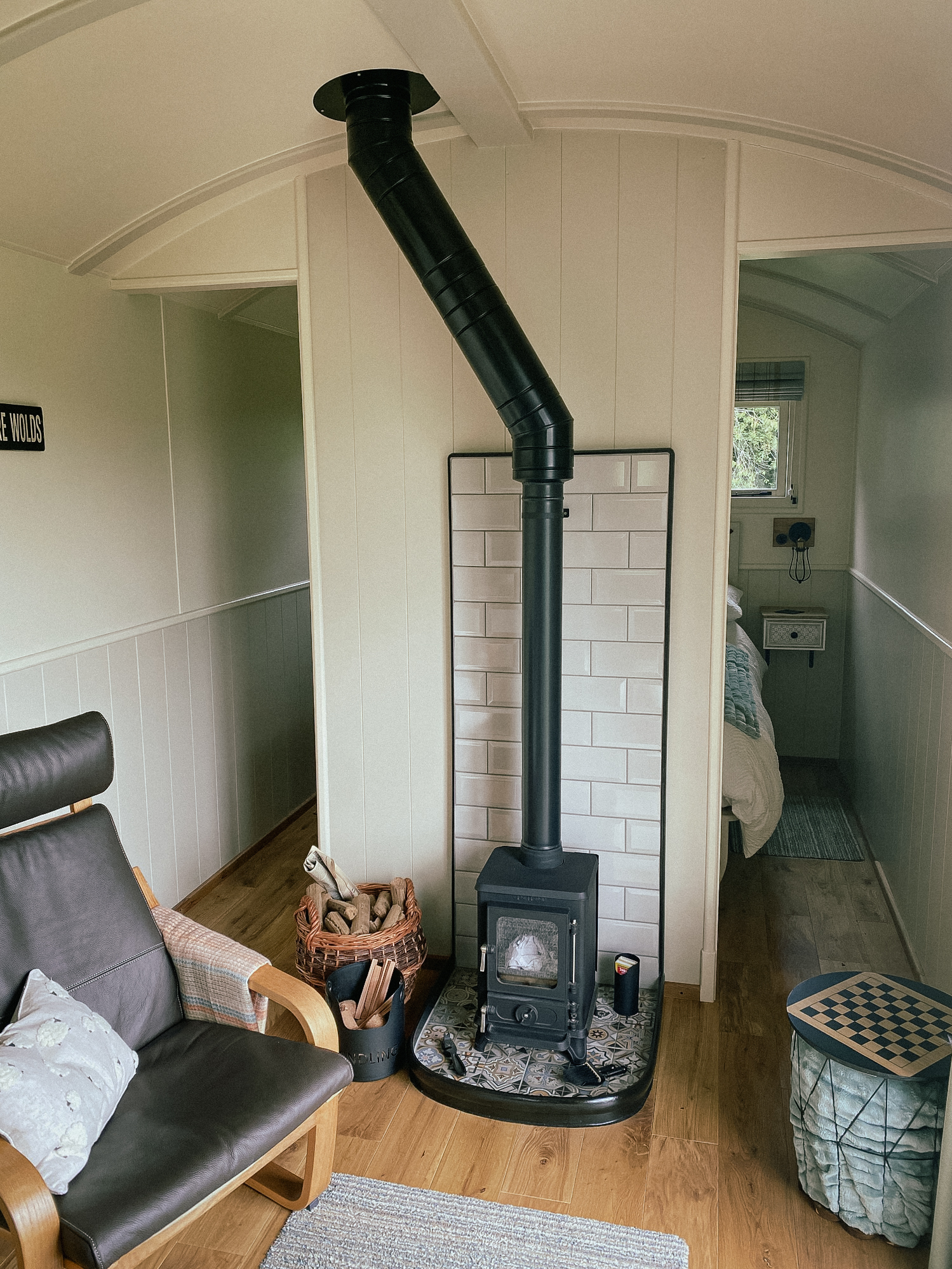 From field to sanctuary, with a wood burning stove for a shepherds hut