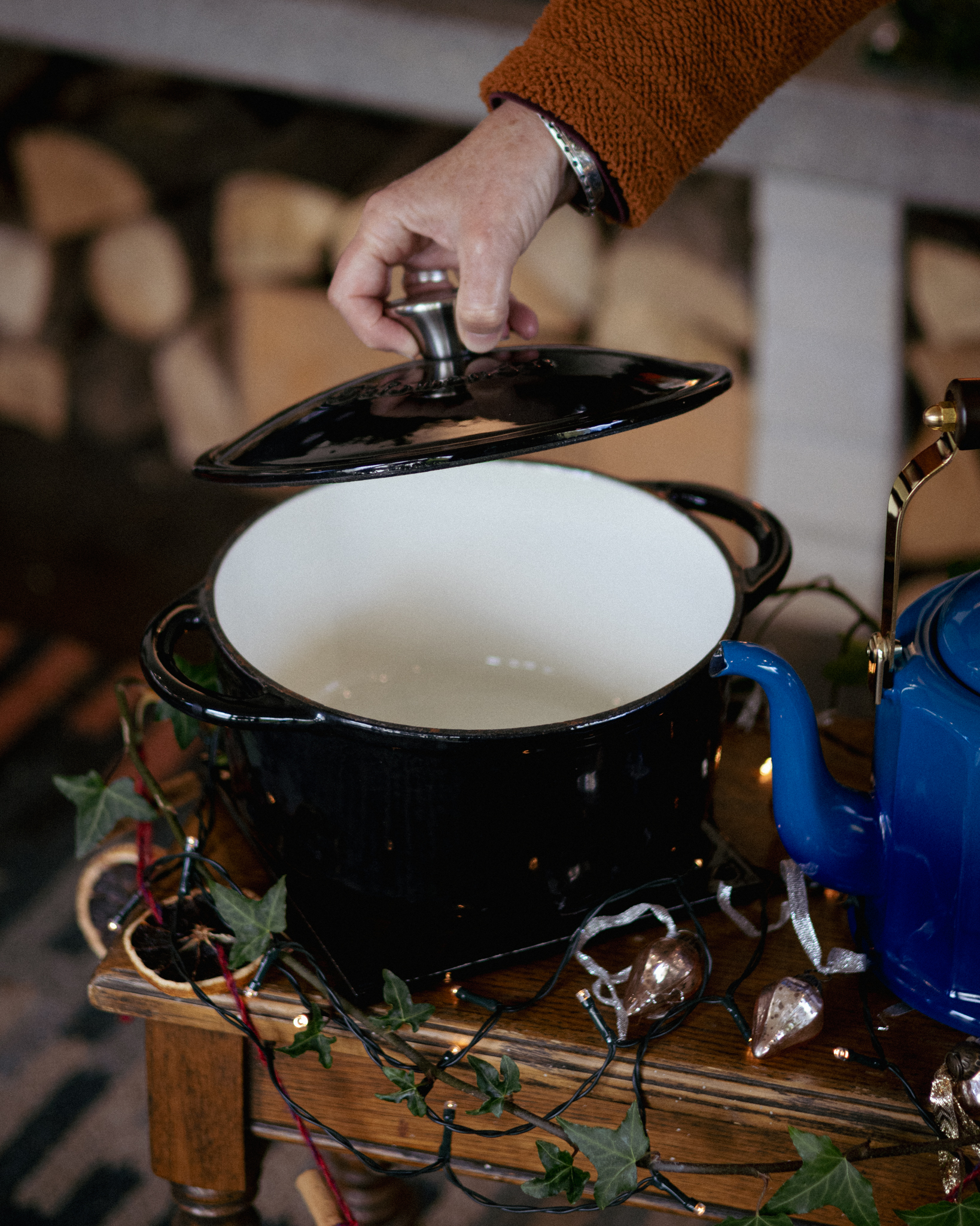 - 1x Large cast iron enamel cooking pot and lid