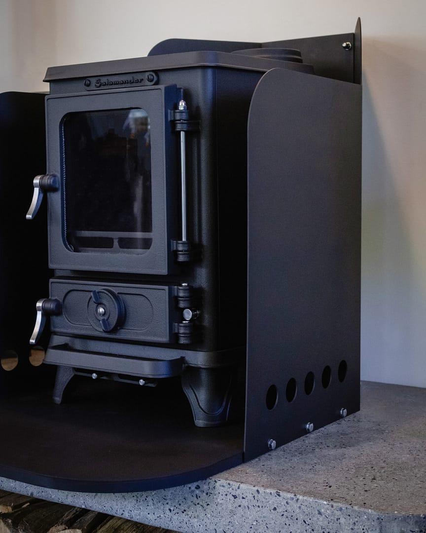 Our enclosure option is perfect for installing your small wood burning stove into a yurt or tent, a shepherd’s hut, a cabin, or any other small space! This negates the need for installing a hearth.